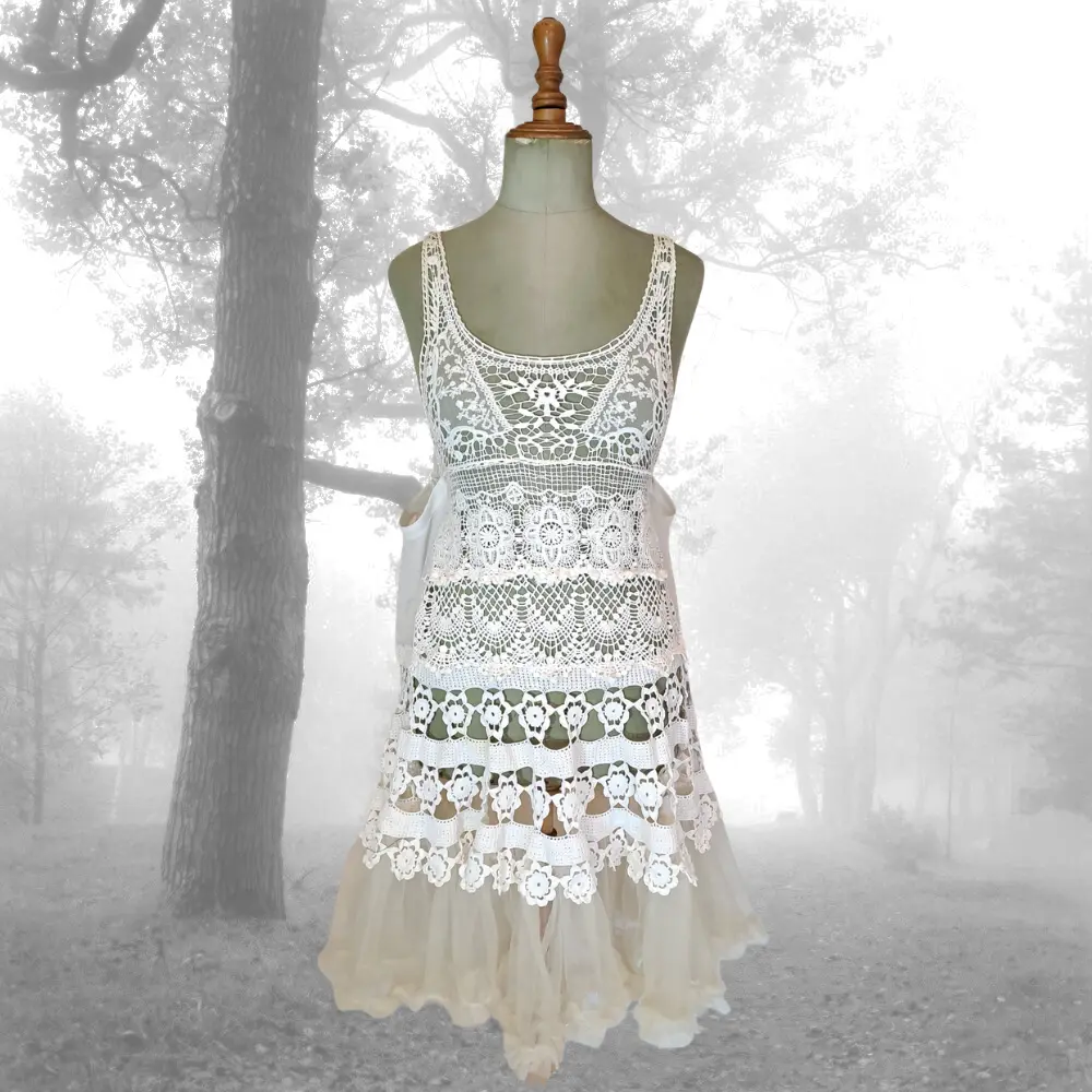 De encajes de ganchillo y prendas blancas rescatadas